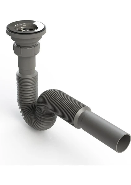 KÖRÜKLÜ LAVABO SİFONU LAVABO GİDER BORUSU KOKU ÖNLEYİCİLİ METAL AĞIZLI 1. KALİTE GRİ