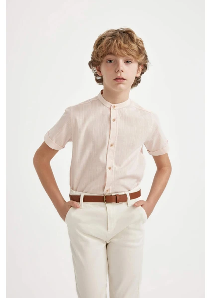 Erkek çocuklar için tasarlanmış yüksek kaliteli keten görünümlü kumaştan üretilmiş, şık ve rahat regular fit gömlek. Dik yaka detayıyla çocuğunuzun tarzına modern bir hava katar. Kısa kollu tasarımıyla yaz aylarında çocuğunuzun şıklığını tamamlar. Çocuğunuz için özel günlerde veya günlük kullanımda mükemmel bir seçim.