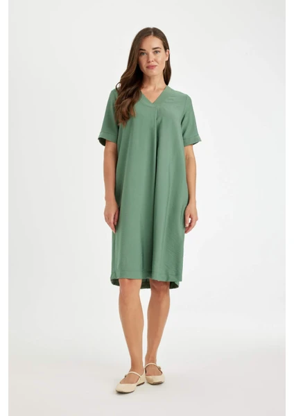 Şıklığınızı ön plana çıkaracak Regular Fit V Yaka Kısa Kollu Midi Elbise ile her anı özel kılın. Kaliteli kumaşı ve şık tasarımıyla göz kamaştırın. Bu elbiseyle tarzınızı konuşturun ve her bakışı üzerinize çekin.