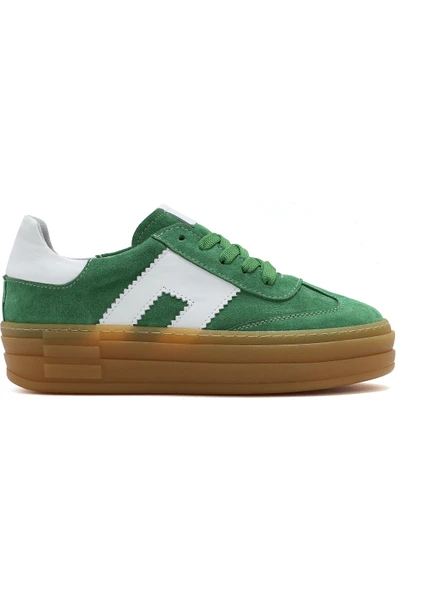 Kadın Yeşil Bağcıklı Süet Deri Sneaker