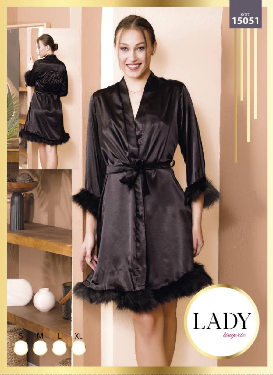 Bu "Bride" temalı saten sabahlık, hem şık görünümü hem de konforlu kullanımıyla özel günlerde gelinlerin vazgeçilmezi olmaya aday bir iç giyim ürünüdür.