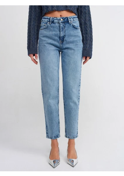 ByCukurovaFrango Leo 90's Dora Mom Fit Kar Yıkama Kadın Kot Pantolon