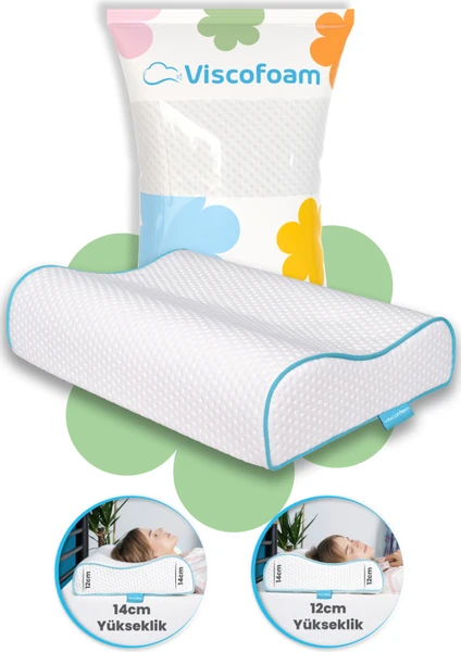 Viscofoam Yüksek Boyun Destekli Ortopedik Yastık Çift Boyun Destekli Visco Yastık - 60x40x14-12cm